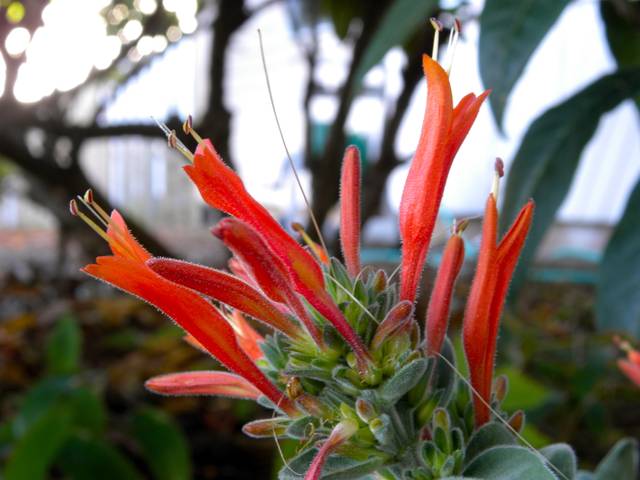 Avec sa souche drageonnante, son port dressé à retombant, il forme un superbe couvre-sol. Ses tiges fines portent des feuilles argentées et duveteuses qui sont semi-persistantes puisqu’elles tombent que lorsque la température descend autour de -4 à -5°C. En été, de fines fleurs tubulaires rouge orangé illuminent le jardin de façon spectaculaire. Particulièrement intéressant à installer dans les jardins secs et les jardins de bord de mer aux hivers doux, le jacobinia dont la croissance est rapide pourra s’y montrer persistant et tolèrera les embruns.